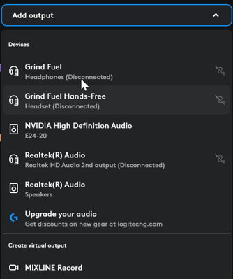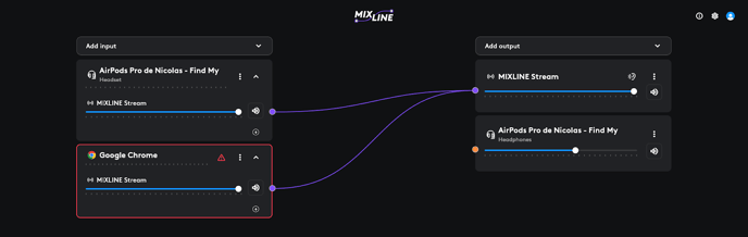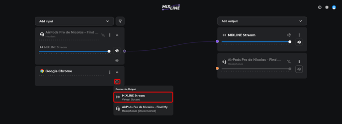 - Do the same on the right side for the outputs. Add your listening device and the new source called MIXLINE Stream.