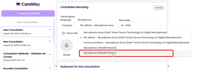 - Start a new consultation in CareWay or in MYLE using the AI assistant.