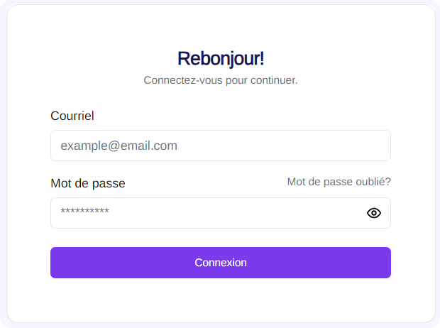 De retour à la page de connexion, veuillez entrer votre courriel et mot de passe, puis cliquer sur Connexion.